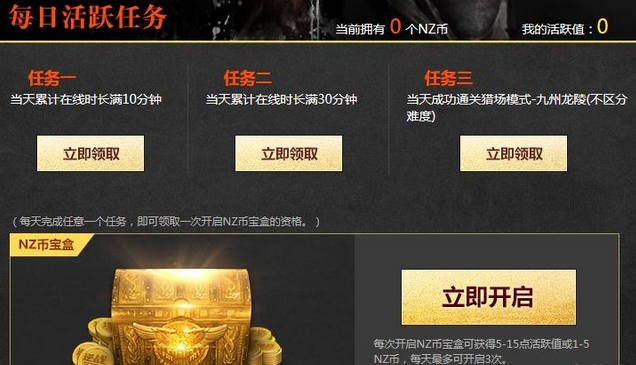 1活动期间,每天完成登录及任务即可直接领取NZ币。NZ币在活动期间可通过参加活动直接累计;