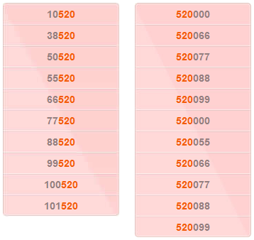 本期闪亮号码将奉上以520开头的7位数字和以520结束的6位数字更有众多66、88等联号数字可以荣幸获得。