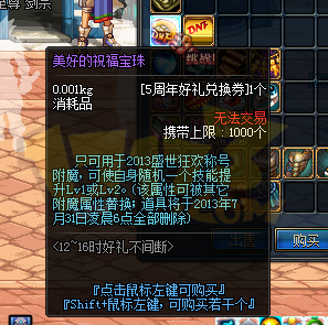 只可用于2013盛世狂欢称号附魔,可使自身随机一个技能提升Lv1或Lv2。(该属性可被其他附魔属性替换;道具将于2013年7月31日凌晨6点全部删除)