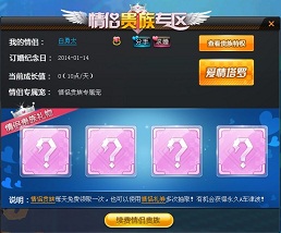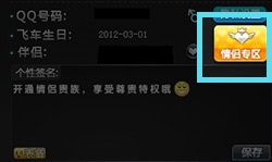玩家可以通过点击小橘子桌面上的大入口,进入情侣贵族专区,也可以通过点击个人信息面板上的情侣专区入口查看;