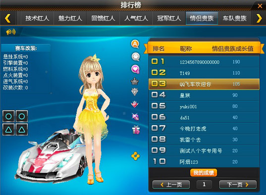 不过要注意的是:情侣贵族红人只允许拥有情侣的玩家上榜,所以还是单身的你赶紧找一个自己的意中人吧!